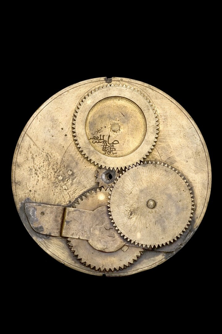 The exhibition includes several astrolabes, which measure the angle of the North Star to the horizon and can calculate the time of day or night and determine the latitude of a ship at sea. They consist of a pair of circular plates made of copper or brass alloys and inscribed with intricate scales for measurement. On the back are gears to coordinate their motion. The astrolabes in the Getty show are particularly beautiful, probably made more for show than for long ocean voyages.