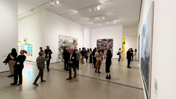 The artworks are drawn entirely from the Broad collection and have been curated by veteran curator Ed Schad and a young assistant, Jennifer Vanegas Rocha. Some artists, such as John Baldessari, Ed Ruscha, Barbara Kruger, and Mark Bradford, are well-known to the public. Others are flourishing now, and their work is shown for the first time in the museum.