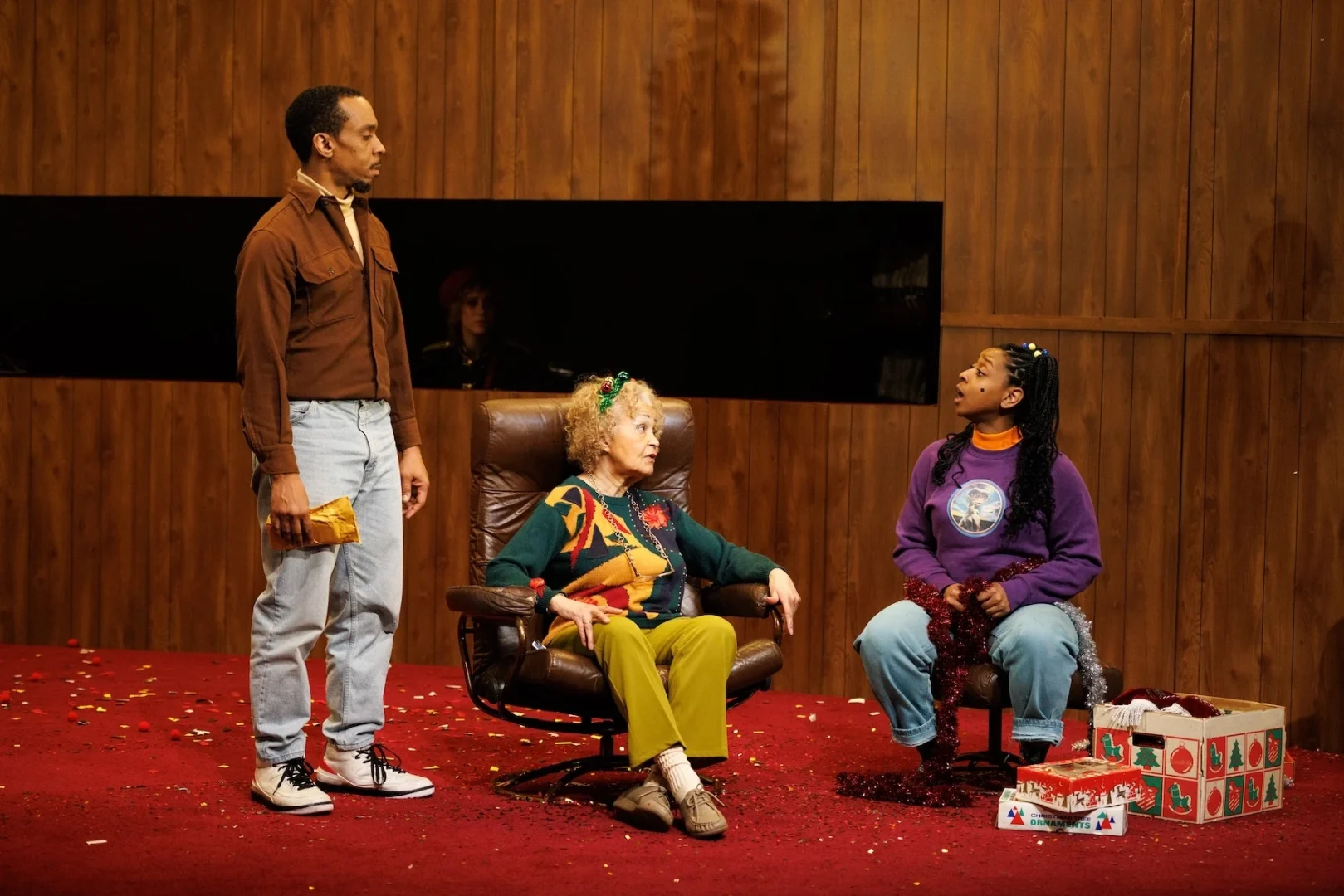 Matters get complicated when Meek’s estranged uncle Clay (solid Andy Lucien), a prominent black conservative, brings his mysteriously ill white wife Virgie (appropriately shattered Crystal Finn) home to the family’s Syracuse, NY, roller-skating rink for the holidays. Meek’s choir Seedlings of Peace and Virgie’s cultish women’s affinity group are involved in attempting to steal Clay’s state secrets. Meek’s dad Smooch (fiery Will Cobbs) and grandma Puddin (fun and feisty Lizan Mitchell) clash with Clay and Virgie, trying to fathom their family member’s transformation from radical Black Panther follower to Reagan White House advisor.