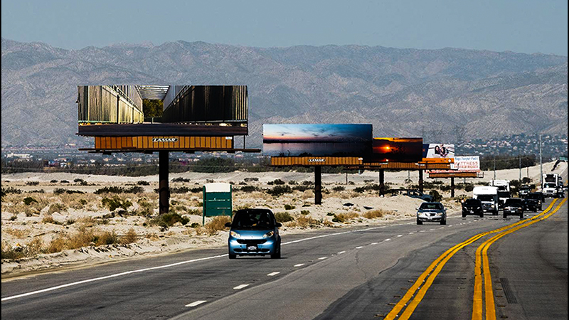 Tyre D. Nichols died in January of 2023 after police beat him following a traffic stop in Memphis. The billbords is a tribute to his aspiring photography. This makes a strong statement in direct contrast with the commercial use of billboards and the impact of a freeway on the desert.