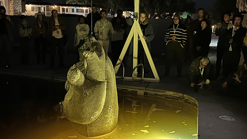 Lauren Bon, the creator of the Metabolic Studios in Los Angeles, is an artist who works with architecture, performance, photography, sound, and farming, to create urban, public, and land art projects to galvanize social and political transformation. Here she creates an object (The Smallest Sea with the Largest Heart) that represents a Blue Whale’s heart.