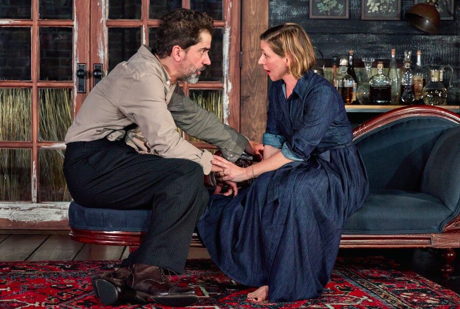 People who make movies and write novels are terrible at relationships. What’s more they don’t give a hoot about the environment or climate change unless their more mature teenage kids force them to. That’s the take-away from Erica Schmidt’s dark comedy The Disappear, presented by Audible at the Minetta Lane Theater. There are some funny moments in this Virginia Woolf wanna-be, but the entire evening feels like a sitcom version of Noah Baumbach’s 2019 film Marriage Story which handled basically the same material of a show-biz couple splitting with more subtlety and depth. Schmidt deserves credit for clever dialogue and a few insightful observations on art versus reality and our narcissistic culture, but the characterizations are too often inconsistent and the plot feels overly familiar and forced.
