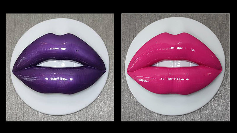 I found creative humor in the work of two artists: Farad Harouni’s “Lips” and Antuan Rodriguez’s interactive installation of punching bags.