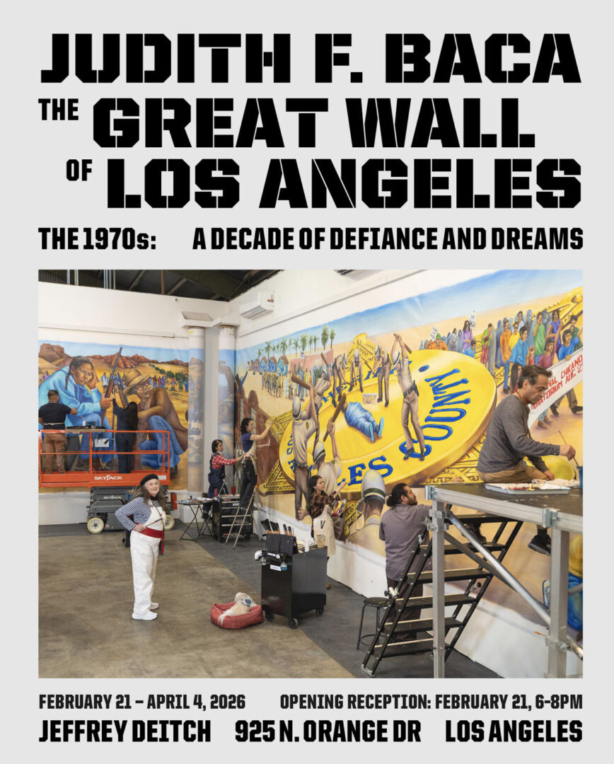 As a longtime admirer of Judy Baca’s work, I had to go see the exhibit of twelve 1970s panels of the Great Wall of Los Angeles mural, that opened at the Jeffrey Deitch gallery on February 22 and will close on April 4.