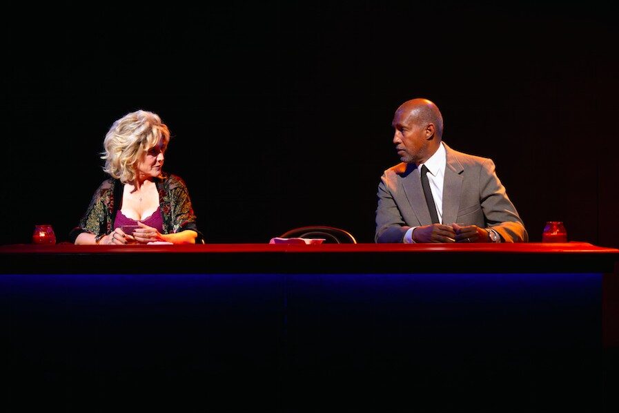 This highlight is bracketed by two shorter works of varying quality. The evening opens with a pair of alternating interior monologues between a been-around-the-block Broad (yes, that is how she is identified in the cast list) and a lonely businessman, refers to as The Man. It’s a rainy night in a deserted bar on Second Avenue. In isolated spotlights, the two patrons spill out their life stories and desperate need for connection. Mary McCann and Dion Graham deliver subtle soul-stirring performances of these nighthawks.