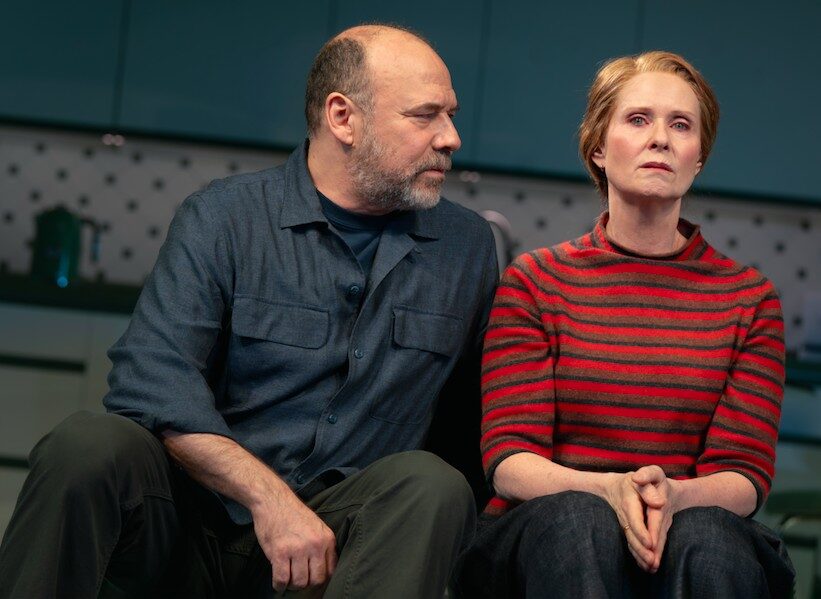 The cast skillfully balances raw emotions with the smooth, manufactured responses of the computer beings. Ninety-six-year-old June Squibb captures Marjorie’s wit and fiery passion to live as well as her frustration with her infirmities. She also keenly documents her struggle to retain her memories and the terrible acknowledgment that it’s a losing battle. Cynthia Nixon’s Tess is a maddeningly real amalgam of disappointed daughter, alienated mother of her own children and bundle of existential angst. She makes Tess’ obsessing over Marjorie’s well-being sympathetic, and we can feel her ache of despair as she discovers the futility of advanced medicine and tech to stave off the inevitable. Danny Burstein is both lovably endearing and shatteringly intense as the aggrieved Jon who progresses from supportive comforter of his wife and mother-in-law to devastated survivor. Christopher Lowell as Walter has the difficult task of playing an artificial construct of a human. He conveys the computer’s desire to help and its emotionless demeanor. This is a thought-provoking and emotionally stirring production sure to ignite discussion and reflection on where we are as we hurtle towards an uncertain future where AI takes more and more from reality.