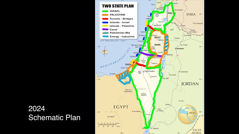 Some of the proposed ideas for “after-the-war” may take decades to implement. For example, the development of artificial islands along the Mediterranean coast of Israel and Gaza could accommodate three million residents, industries, health and educational facilities, and Israeli and Palestinian airports. This would free open space for agriculture, parks, and recreation.