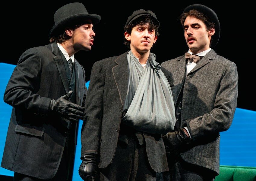 Roundabout is presenting another multilayered political drama (but it’s really a comedy), Rajiv Joseph’s Archduke at their Off-Broadway space, the Laura Pels. As in his previous works such as Guards at the Taj and Describe the Night, Joseph depicts ordinary figures caught up in the tidal wave of history. Here three clueless teenagers, each with a fatal diagnosis of tuberculosis, are recruited to assassinate Archduke Ferdinand in 1914 Sarajevo, setting off World War I. None of them really understand the geopolitical machinations behind their actions, they just want their young lives to have some purpose before they are snuffed out by disease, and to find a really good sandwich.