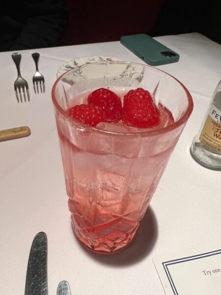 After being greeted by maître d’ and seated in a comfy alcove, my companion and I ordered cocktails – a Scottish elderberry gin and tonic for her and a shandy for me – perfectly refreshing after an uncommonly warm day in Glasgow.