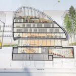Paris’ new Palais de Justice, also designed by Renzo Piano, responds to a very complex program – ninety new courtrooms built vertically – while confronting sustainability and the creation of new green spaces on roofs.
