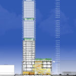The new law courts will stand 160 meters high, have an internal area of around 100,000 m2 and will accommodate up to 8,000 people per day. The building’s facades are fully glazed. On the three blocks of the tower, fine blades extend the glazing beyond the facade, exalting its verticality. The building’s primary structure, robust and orthogonal, ensures flexibility over the long term that will be able to accommodate future requirements and any changes in the way the justice system operates.