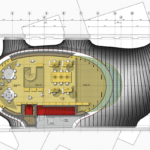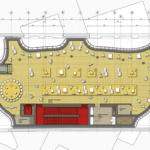 The ground-level entrance hall is designed as an active social space, featuring a restaurant and bookstore. The ample, multi-purpose space directly adjacent to the entrance hall may be used as an auditorium accommodating 350 persons, an exhibition space, or an event venue.
