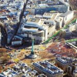 In the north-east of the park stands the Cinémathèque Française (the former American Center) designed by Frank Gehry, and on the raised terraces are the 21 sculptures of Rachid Khimoune’s “Children of the World” installation, created in 2001 to honor children’s rights.