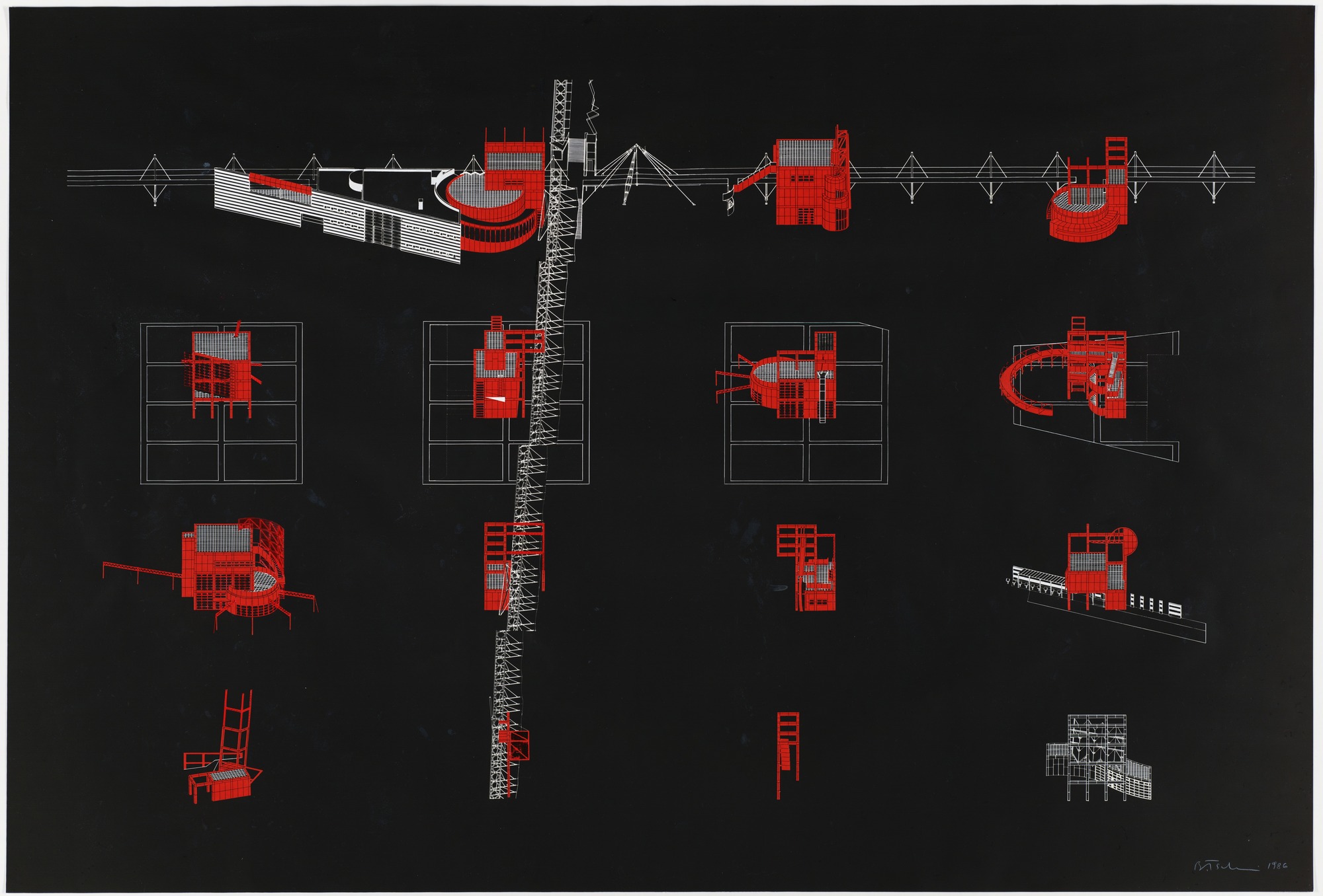 The park was designed by Bernard Tschumi, a French architect of Swiss origin, who built it from 1984 to 1987 in partnership with Colin Fournier, on the site of the huge Parisian abattoirs (slaughterhouses) and the national wholesale meat market, as part of an urban redevelopment project. He conceived thirty-five architectural “follies“ to give a sense of orientation to the visitors.