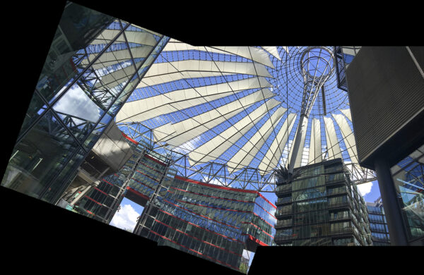 The Sony Center, designed by Helmut Jahn and Peter Walker as landscape architect, is one of the most impressive public spaces in Berlin. Its roof structure is iconic and came to symbolize the whole Potsdamer Platz itself. It is one of the few buildings in the area which offers a public plaza which is always lively and happening. It is the star of the show. Its huge atrium covered by an umbrella-shaped roof contains a cinema, a shop selling Sony gadgets, and the remains of the ground floor of the old Esplanade Hotel.