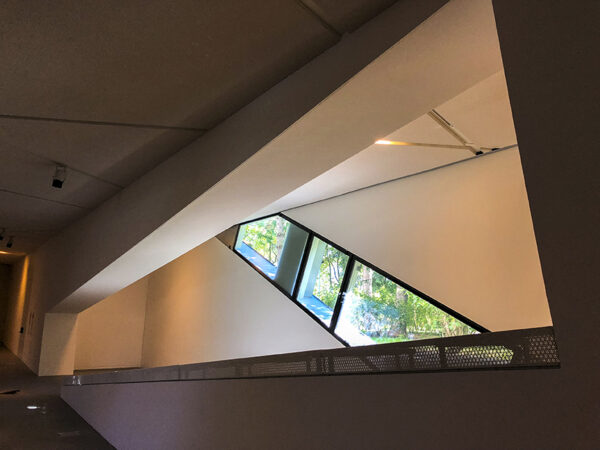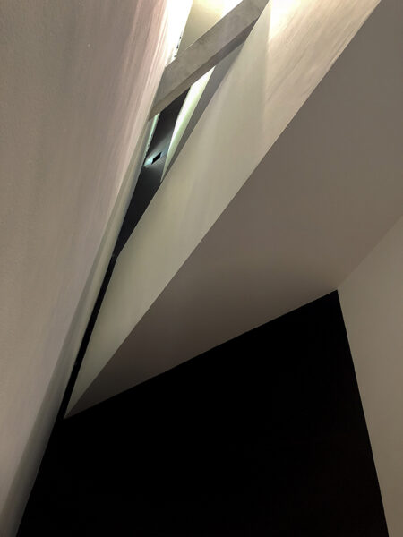 Libeskind’s building has no entrances or exits of its own. There are promises of doors, but they turn out to be dead ends. Nothing now is soothing. Every edge is jagged, every corridor unremitting. The floors slope. The concrete walls oppress. You are not in charge of your own destiny.