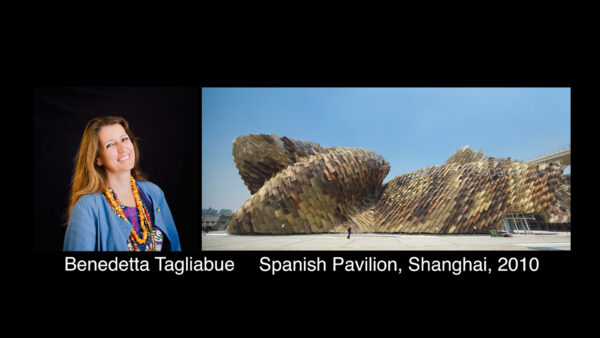 Another architect to follow is Benedetta Tagliabue. In 1991 she founded the studio Miralles Tagliabue EMBT with Enric Miralles (1955-2000.) Her works include the Scottish Parliament in Edinburg, The Santa Caterina Market in Barcelona, and the Spanish Pavilion in Shanghai, shown here.