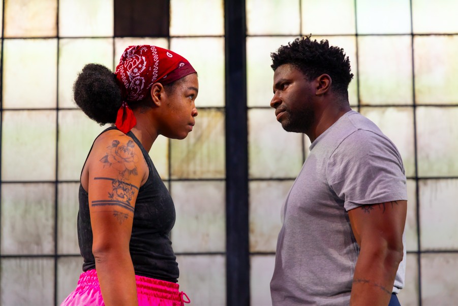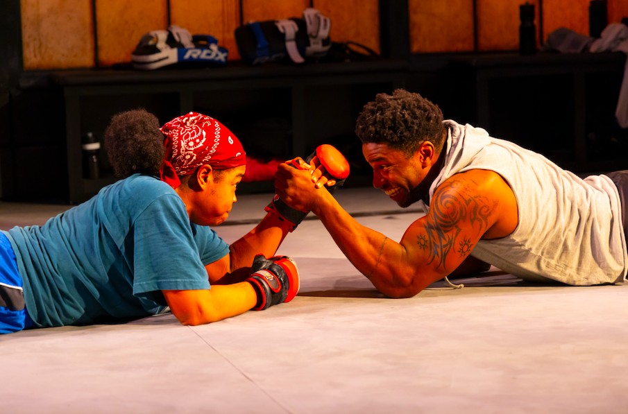 Okieriete Onaodowan has the massive muscular presence to be convincing as a dominating fighter, and the acting skill to convey Big’s sensitive hidden side. Aigner Mizzelle is equally versatile as the needy yet boisterous Lil, displaying both her brash exuberance and her concealed vulnerability. In one interesting piece of staging Anyanwu has the two break from a rigorous training session into an interpretative dance expressing their love and joy in each other’s company. Rickey Tripp supplied the fluid dance movement, flowing from calisthenics to choreography.