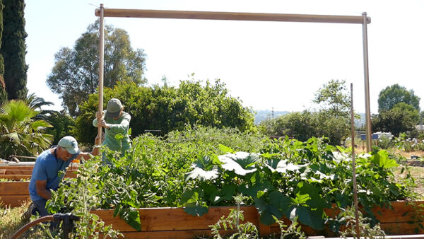 We crossed the recently completed Gateway Bridge over the Long Beach-Los Angeles harbor and reached the site in San Pedro. The contrast with the bridge’s high-tech and 10,000-year-old agriculture was striking. While Ruth helped Peter Rothe, a designer, with his planting, I wandered around.