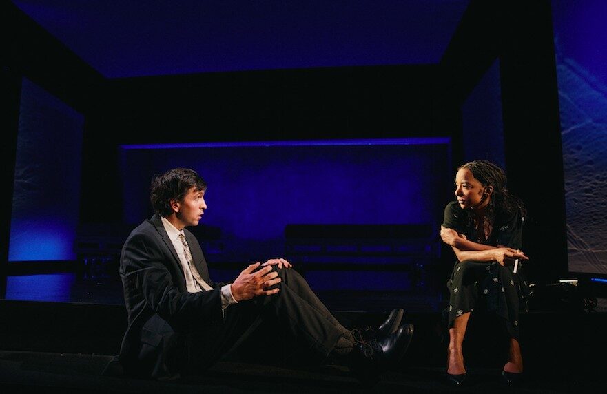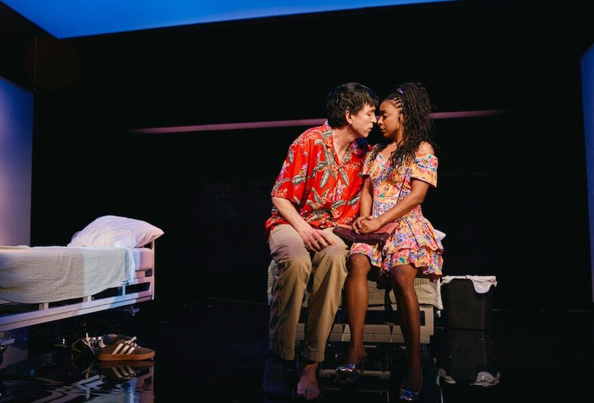 Like the stars of Two Strangers, Playground’s two-person cast juggles outrageous humor with heartbreaking pathos. Nicholas Braun of Succession and two-time Tony winner Kara Young endow Doug and Kayleen with a vibrant physical life, throwing themselves around Arnuldo Maldonado’s stark hospital-like set making their numerous collisions and smash-ups totally creditable. Brian Strumwasser’s makeup design deserves mention for the realistic deception of their scars and bruises as do Sarah Lux’s costumes which suggest the different stages in the characters’ lives.. Young is especially moving as the damaged Kayleen, covering her soft center with a bristly exterior. Injuries is a sort of a reverse romantic comedy and a more devastating, but ultimately more honest experience than Two Strangers.