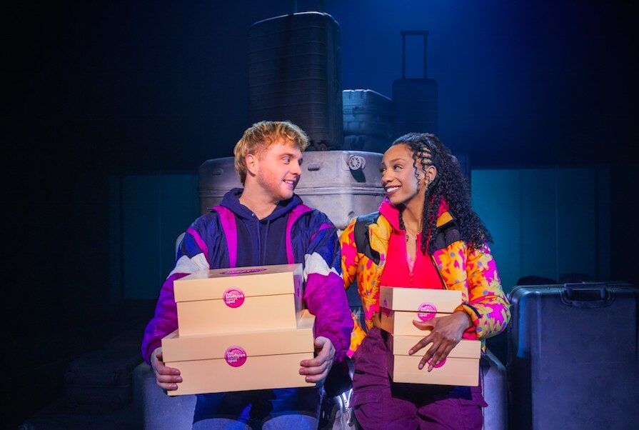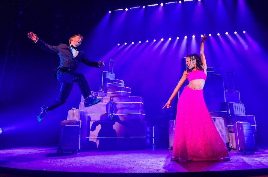 The elaborately titled Two Strangers takes the basic romcom trope of two previously unacquainted, dissimilar characters meeting in a tense situation, running into conflict and then into each others’ arms. There’s shopping, sightseeing, sex, heartbreak, and an ambiguous resolution. Luckily, Jim Barne and Kit Buchan’s songs and dialogue are snappy and cute enough to overcome the overly familiar story arcs. Tim Jackson’s slick and smooth direction and choreography works perfectly on Sutra Gilmour’s versatile revolving set, employing set pieces in the shape of luggage of varying sizes to suggest multiple scenes in Gotham.