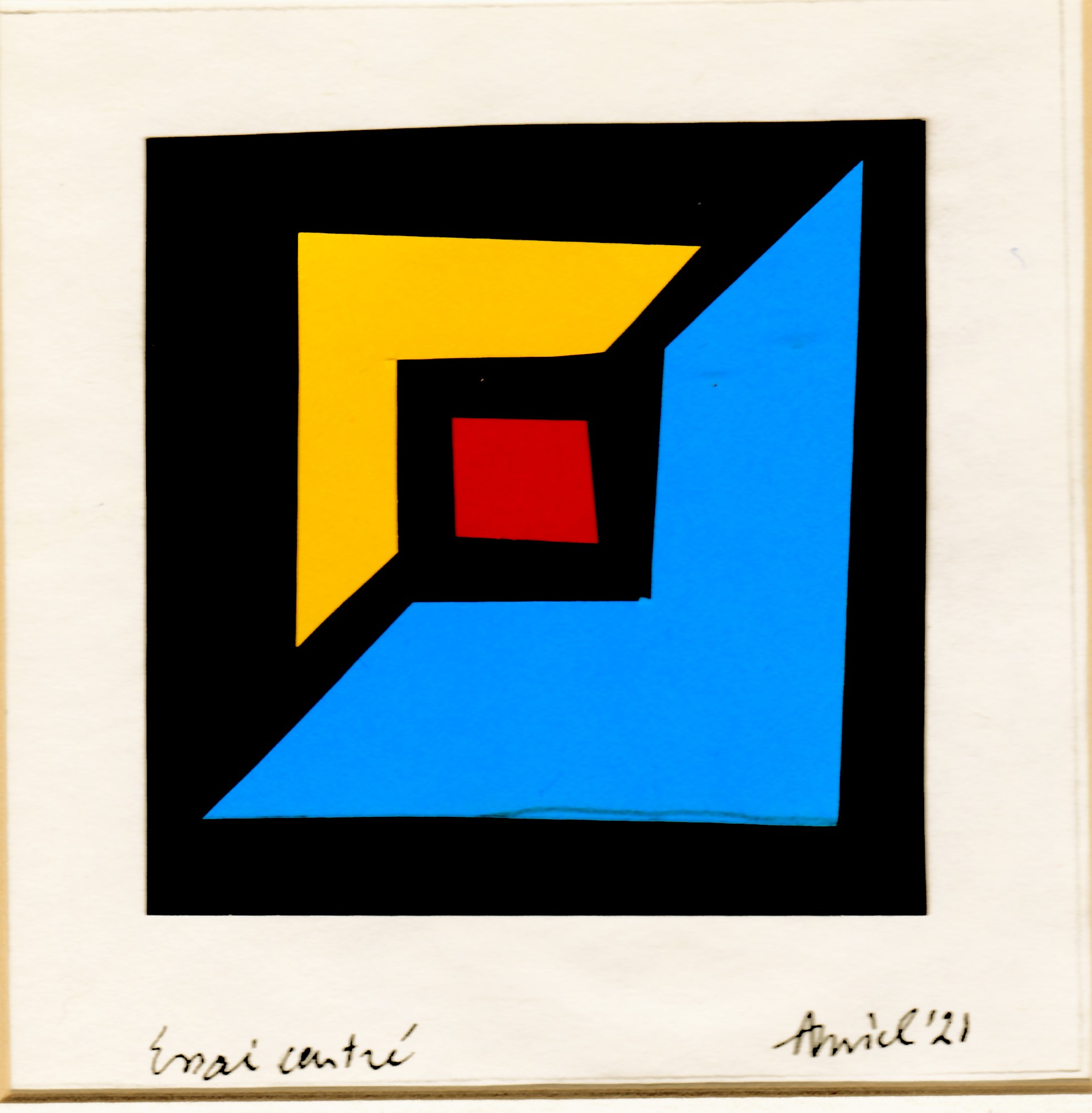 In the feature image, reprised below, I show my first attempt at creating a three parts collage, to be followed with similar ones varying in geometric pattern and colour combination, but all based on Forbes’ “Rule of odds.”